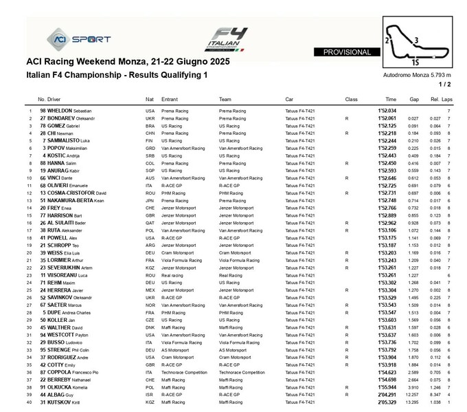21 июня в 11:30 на автодроме Монца в Италии состоится первая гонка третьего этапа сезона Итальянской Формулы-4, в которой принимает участие украинский пилот Александр Бондарев.