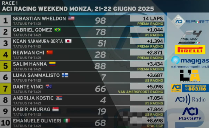 Результаты первой гонки Формулы-4 в Монце: