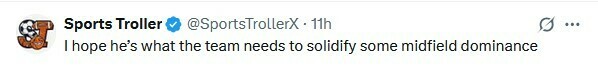 Sports Troller: Надеюсь, он тот, кто нужен команде, чтобы закрепить свое доминирование в полузащите.
