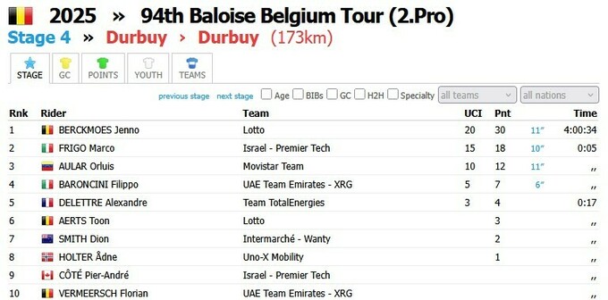 Тур Бельгии 2025. Победу на четвертом этапе одержал Дженно Беркмос