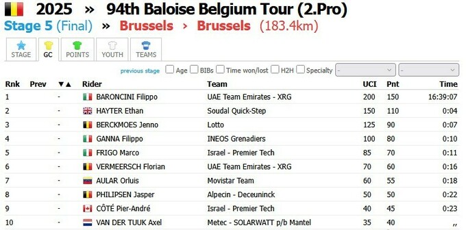Тур Бельгии 2025. Победу в велогонке одержал Филиппо Барончини