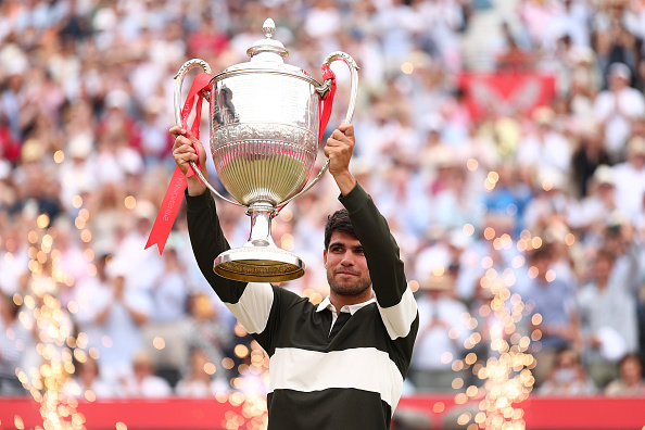 Звездный испанский теннисист и вторая ракетка мира Карлос Алькарас стал чемпионом травяного турнира АТР 500 в Лондоне, Великобритания.