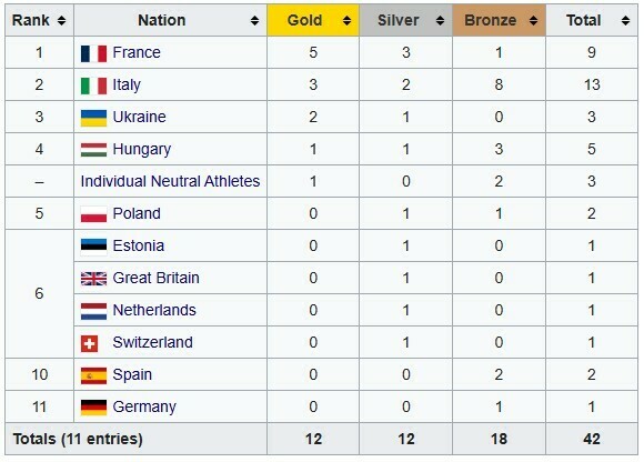 Соревнования проходили в итальянской Генуе, было разыграно 12 комплектов наград. Украинцы завоевали три медали (две золотые и одну серебряную) в соревнованиях по шпаге и сабле.