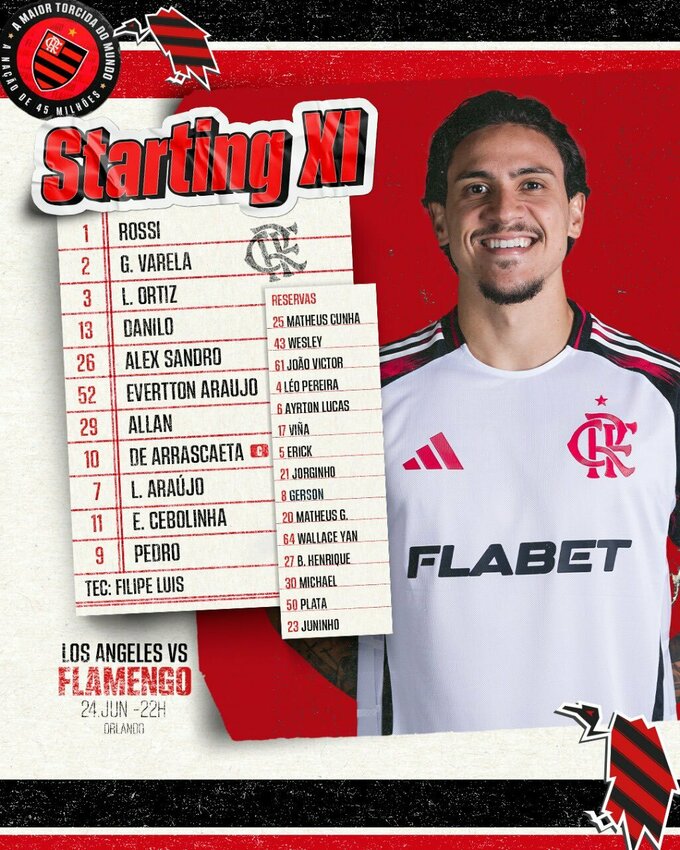 Названы стартовые составы на матч Лос-Анджелес – Фламенго