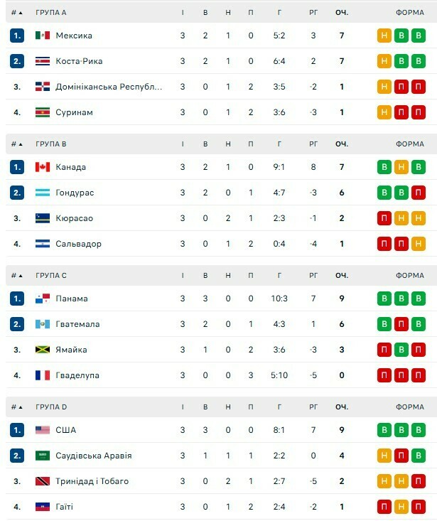 Из этой группы в плей-офф вышли Канада (7 очков) и Гондурас (6), а Кюрасао (2) и Сальвадор (1) покидают турнир.