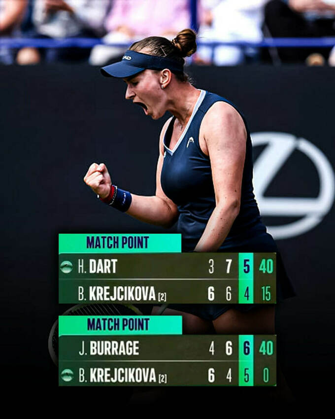 В каждом из двух поединков Барборе пришлось оформлять камбек. В игре против Дарт 17-я ракетка уступала 4:5 (15:40) на приеме в решающем сете, отыграла два матчбола, взяв три гейма подряд. А в матче с Баррейдж в третьей партии чешская теннисистка спасла три матч-поинта в 12-м гейме на подаче и добыла викторию на тай-брейке.