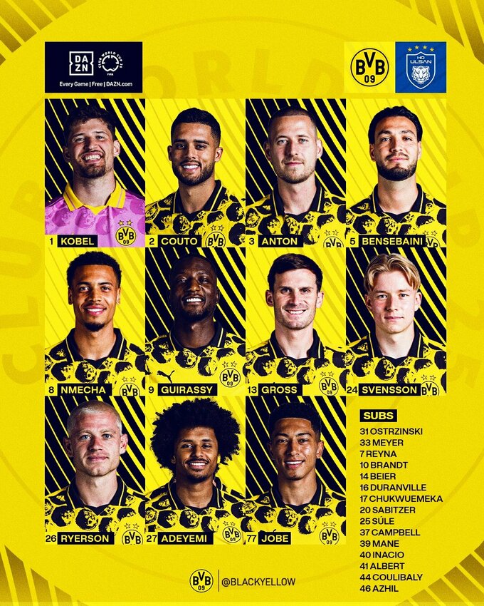 Обнародованы стартовые составы на матч между Боруссией Д и Ульсан ХД