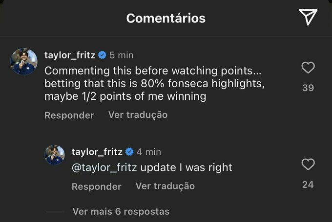 Американский теннисист Тейлор Фритц, после победы в четвертьфинале турнира ATP 250 в Истборне над Жоау Фонсекой, оставил шуточный комментарий в соцсети.