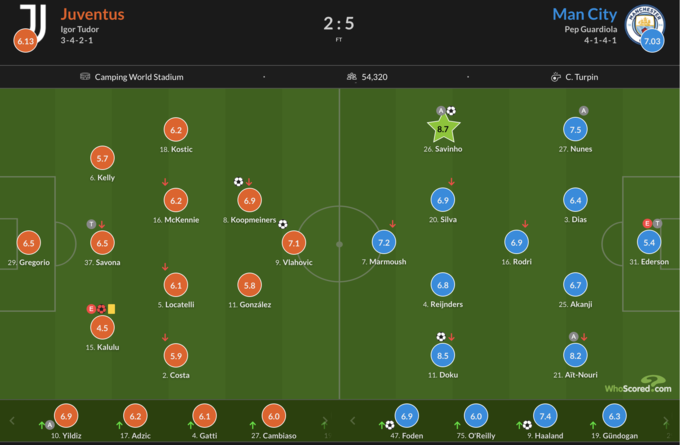 Статистический портал WhoScored отдал предпочтение другому игроку «Манчестер Сити» - Савиньо, который забил и отдал одну голевую передачу. Ему положили оценку – 8,7.