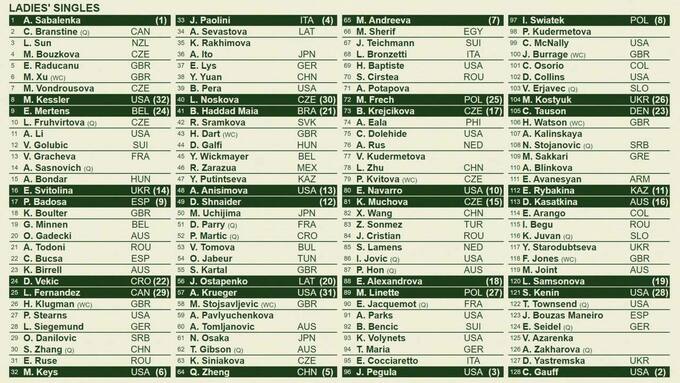 27 июня состоялась жеребьев Уимблдонского турнира 2025 в женском одиночном разряде.