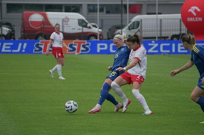 На 26-й минуте Едлиньска была близка к дублю, но ее удар в дальний угол пришелся в штангу. Украинки также имели свои моменты, однако удары Козловой и Ивковой оказались неточными. Минимальное преимущество команды хозяек сохранилось до перерыва.
