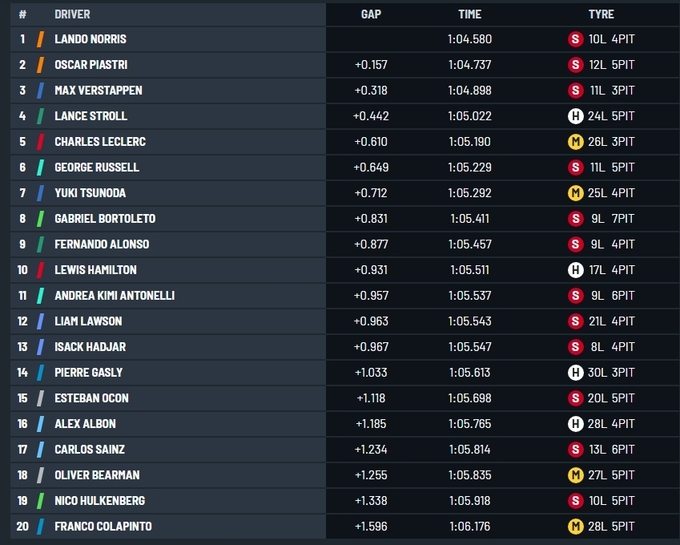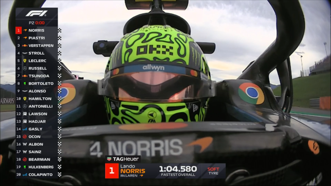 Во второй практике на вершину вернулись уже пилоты Макларена, а Ландо Норрис был чуть быстрее напарника Оскара Пиастри.