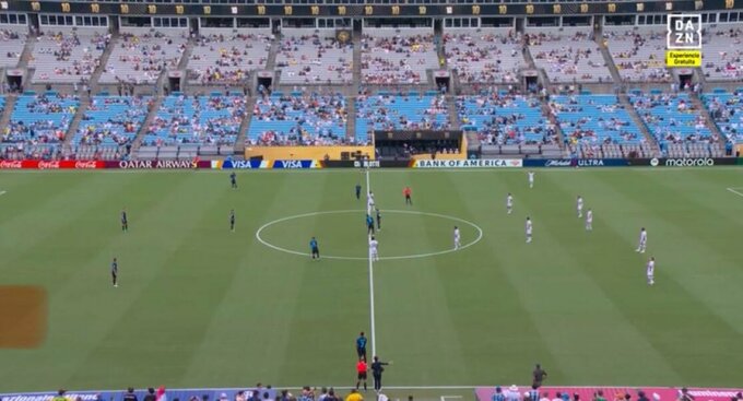 Арена, которая вмещает 74,867 зрителей, заполнена меньше чем на половину.