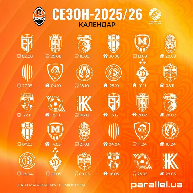 Украинская Премьер-лига обнародовала календарь матчей сезона 2025/26.
