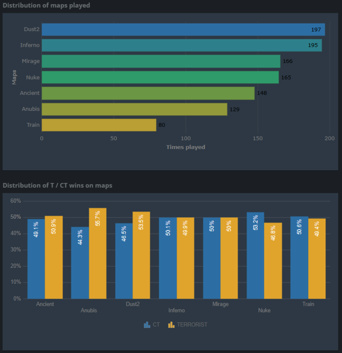 Далее в списке идут Mirage (166 карт), Nuke (165), Ancient (148), Anubis (129) и Train (80). Эти цифры показывают, что классические карты по-прежнему доминируют на турнирной сцене, хотя некоторые из относительно новых локаций постепенно догоняют их по частоте выбора.