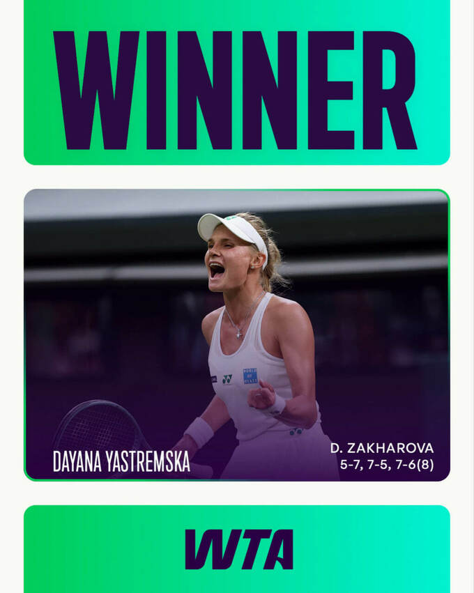 Ястремская стала второй представительницей Украины, которой удалось выйти в 1/16 финала Уимблдона-2025. 2 июля это сделала Элина Свитолина, которая выбила другую бесфлажную Александру Саснович.