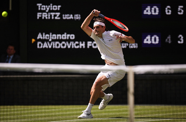 No.5 seed Taylor Fritz defeats Alejandro Davidovich Fokina 6-4, 6-3, 6-7(5), 6-1 to reach the last 16 at #Wimbledon pic.twitter.com/Qqn6BA2N0t