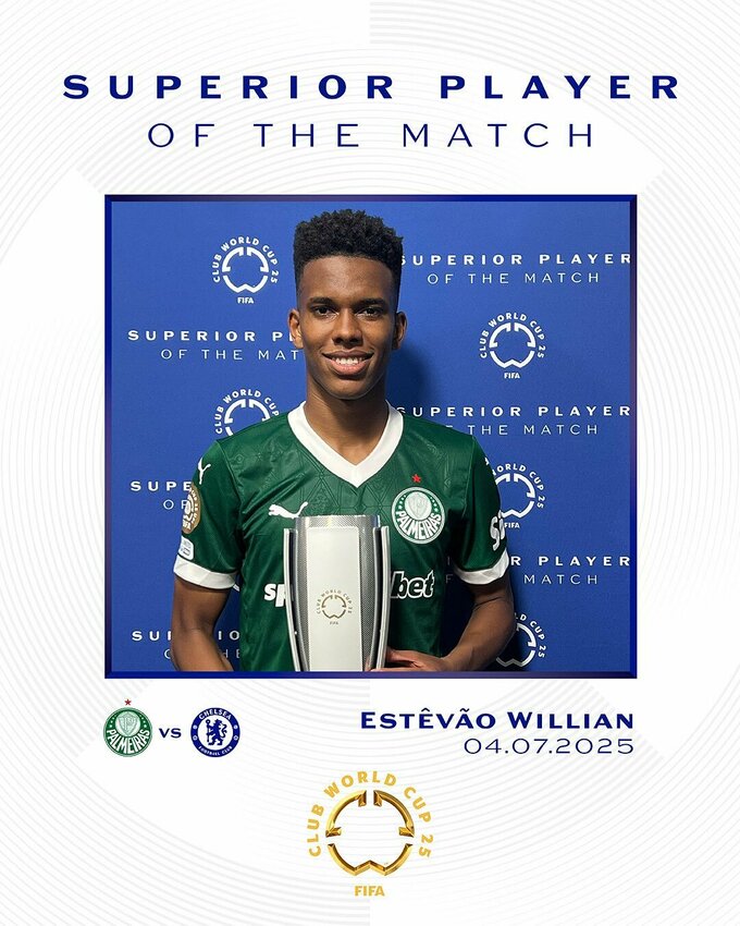 ФОТО. Бразилец Эстевао Виллиан назван лучшим игроком матча