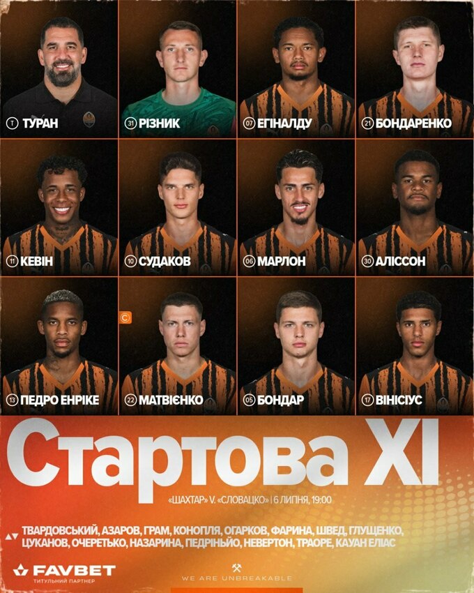 6 июля в 19:00 встречаются Шахтер Донецк и чешская команда Словацко.