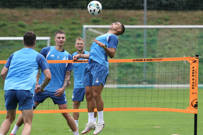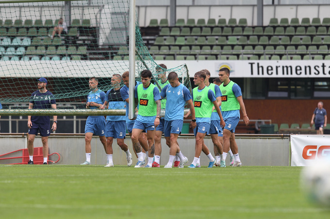 Погода в Бад-Вальтерсдорфе изменилась, и в пятницу, 4 июля, на смену летней жаре пришел дождь, который сопровождал тренировку «бело-синих».
