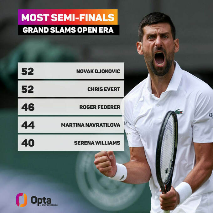 Ноле повторил достижение Крис Эверт, у которой также 52 полуфинальных матча на слэмах.
