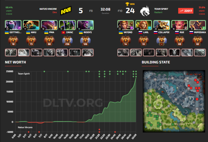 На второй NAVI снова решили акцент делать на мид, взяли Huskar для Niku, но spirit ответили Windranger. Медленная карта была от обеих команд, но spirit на классе быстро набрали свой нетворс и легко завершили серию.
