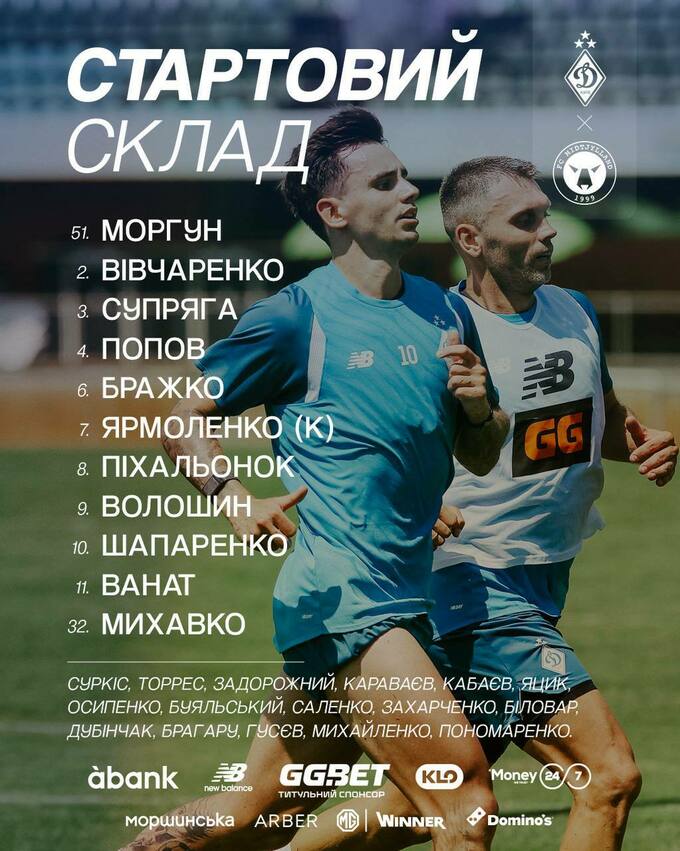 Состав киевского «Динамо» на контрольный поединок с «Мидтьюлландом»