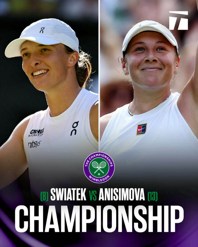 Ранее Анисимова и Свентек никогда не играли между собой. Финал Уимблдона у женщин запланирован на субботу, 12 июля.