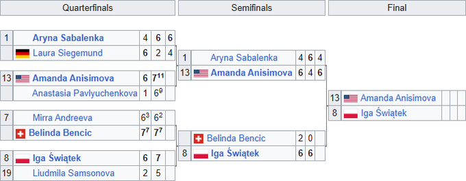 10 июля Аманда Анисимова наказала Арину Соболенко, а Ига Свентек выбила Белинду Бенчич