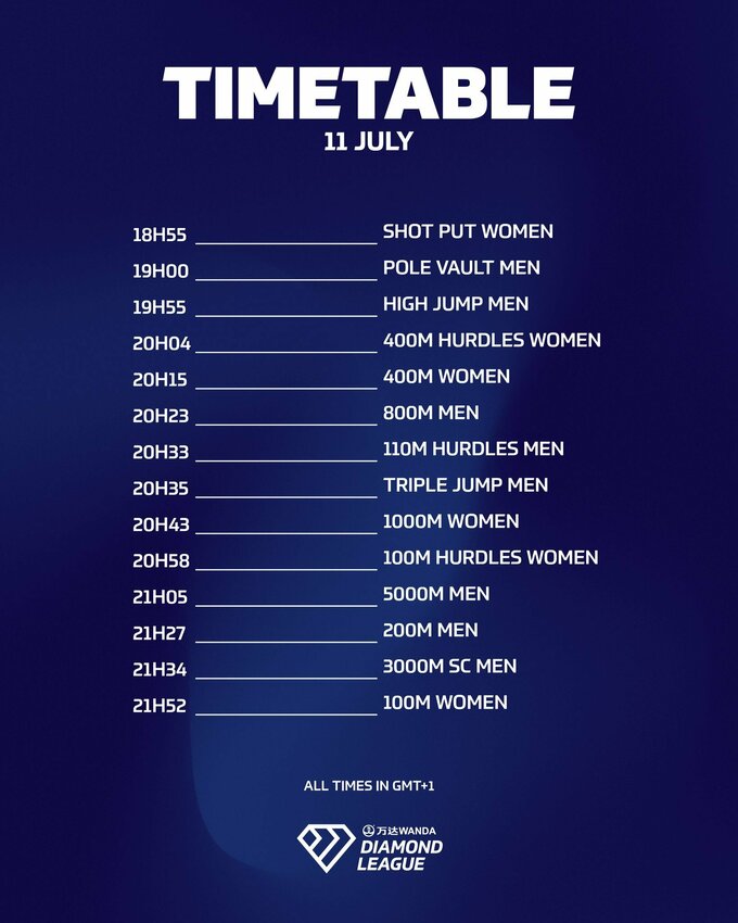 Олимпийский чемпион Ноа Лайлс из США впервые в сезоне стартует на этапе Бриллиантовой лиги. Чемпион Европы на дистанции 800 метров Габриэль Туаль из Франции нацелен на новый мировой рекорд. В беге на 400 метров с барьерами выступит Фемке Бол, звезда из Нидерландов.