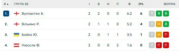 Соперником украинца в группе 30 являются Бен Вулластон (Англия), Робби Уильямс (Англия) и Флориан Нюссле (Австрия).