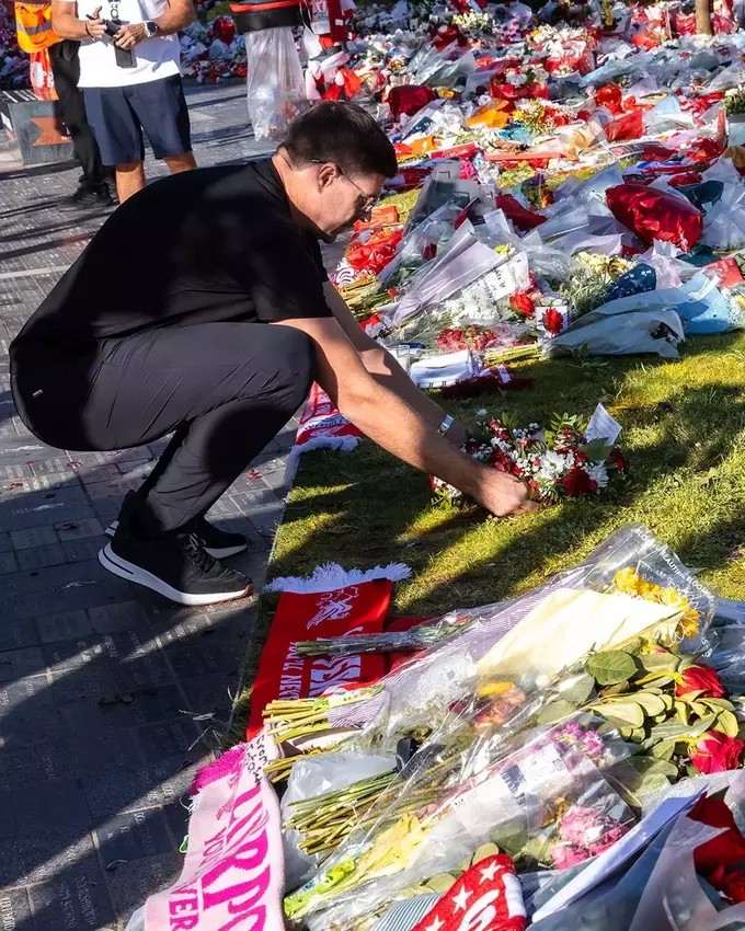 Знаменитый футболист прошлого Стивен Джеррард отдал дань памяти Диогу Жоте и его брату Андре Силве, возложив личный венок у «Энфилда».