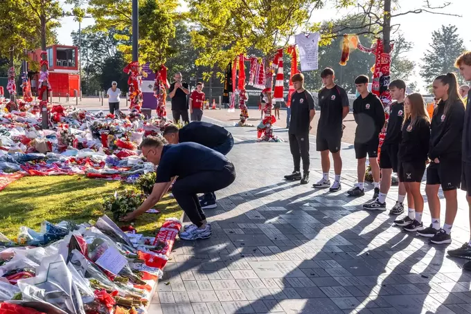 Легенда «Ливерпуля» возложил цветы к мемориалу возле главной трибуны