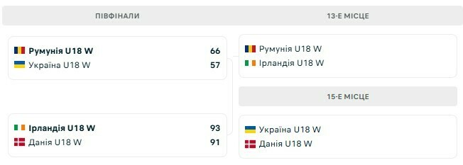 В заключительном матче на турнире за 15–16 места Украина 13 июля в 13:00 сыграет против Дании, которая уступила Ирландии (91:93).