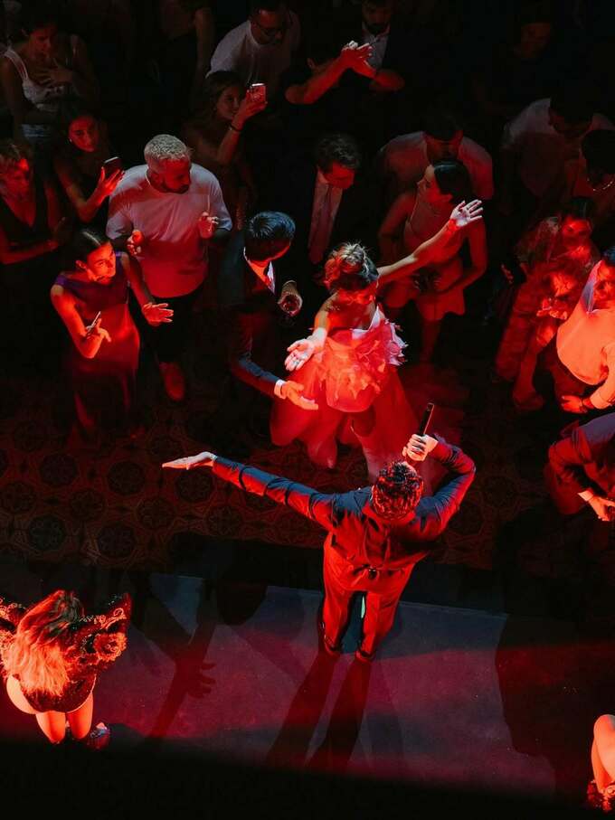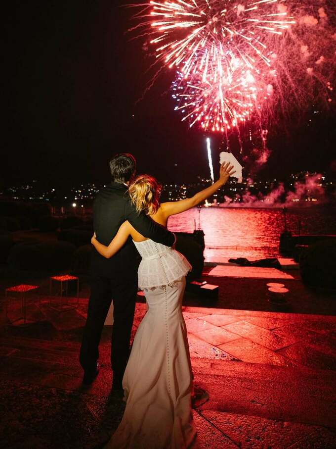 После венчания в церкви гости наслаждались аперитивом с видом на озеро, затем — ужин с живой музыкой. Праздник продолжился на танцполе с выступлениями артистов. В полночь состоялся фейерверк.