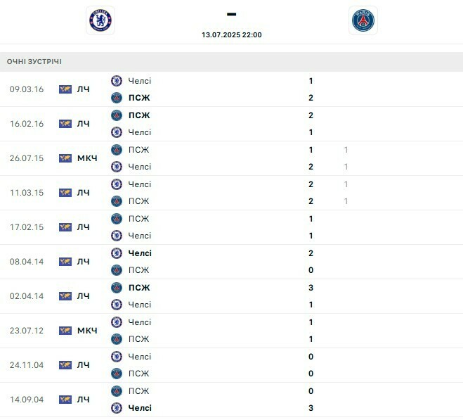 Очные встречи между Челси и ПСЖ в XXI столетии