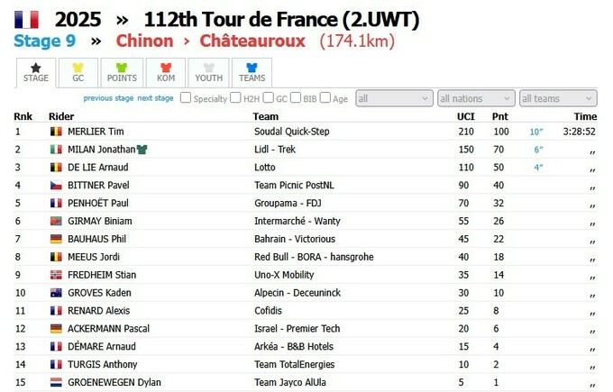 Tour de France 2025. Победителем девятого этапа стал Тим Мерлир