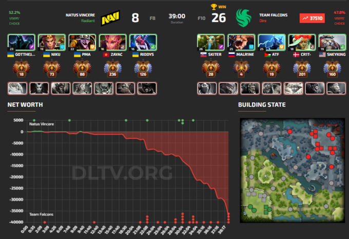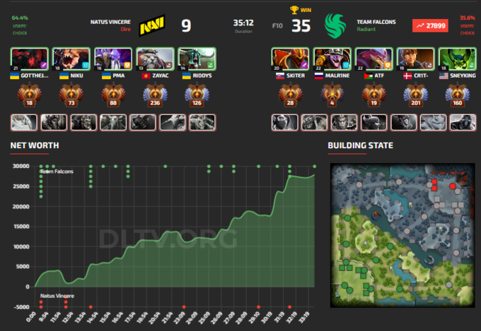 Во второй карте Natus Vincere решили сыграть, как и Falcons, с Tusk на саппорте и Primal Beast в миде. Niku снова уступил по скиллу malr1ne, вражеский Timbersaw отыграл со статистикой 19/1/11.