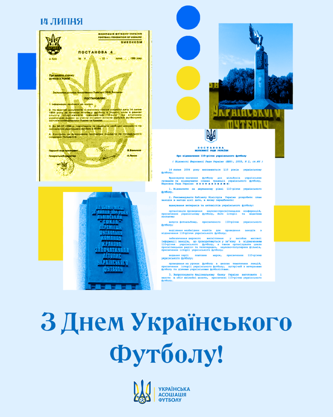 Украинская ассоциация футбола сообщила, что 14 июля – день рождения украинского футбола, а также опубликовала историческую справку: