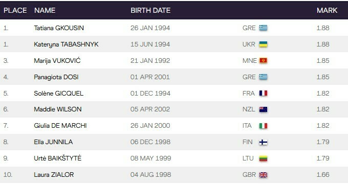 - 1–2. Катерина Табашник (Украина) – 1.88 м