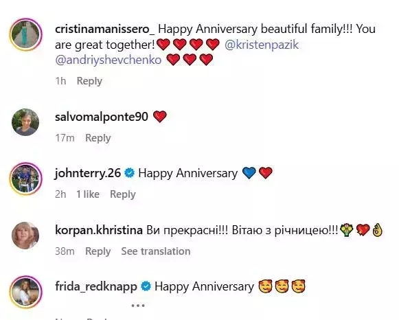 14 июля Андрей Шевченко отметил 21-ю годовщину брака с американской моделью Кристен Пазик.