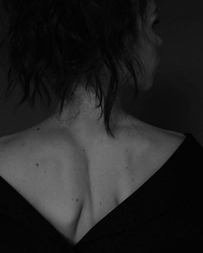 Молодая мама позировала в одном пиджаке на голое тело.