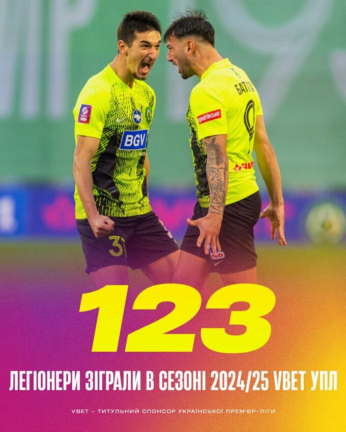 В сезоне УПЛ 2024/25 сыграло 123 легионера