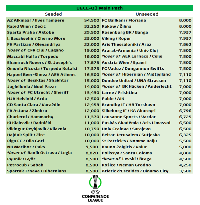 Кроме того, участником Q3 Лиги конференций может стать донецкий Шахтер, если уступит Бешикташу в Q2 Лиги Европы. Проигравший из этой имеет статус сеяного в Q3 ЛК, соперника выберут из несеяных.