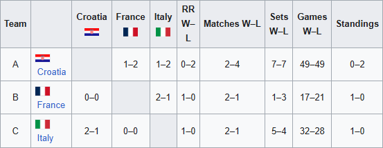 Параллельно встрече Франции и Хорватии также состоялось противостояние в группе А между Грецией и Испанией. Победитель был определен еще по итогу одиночных матчей.