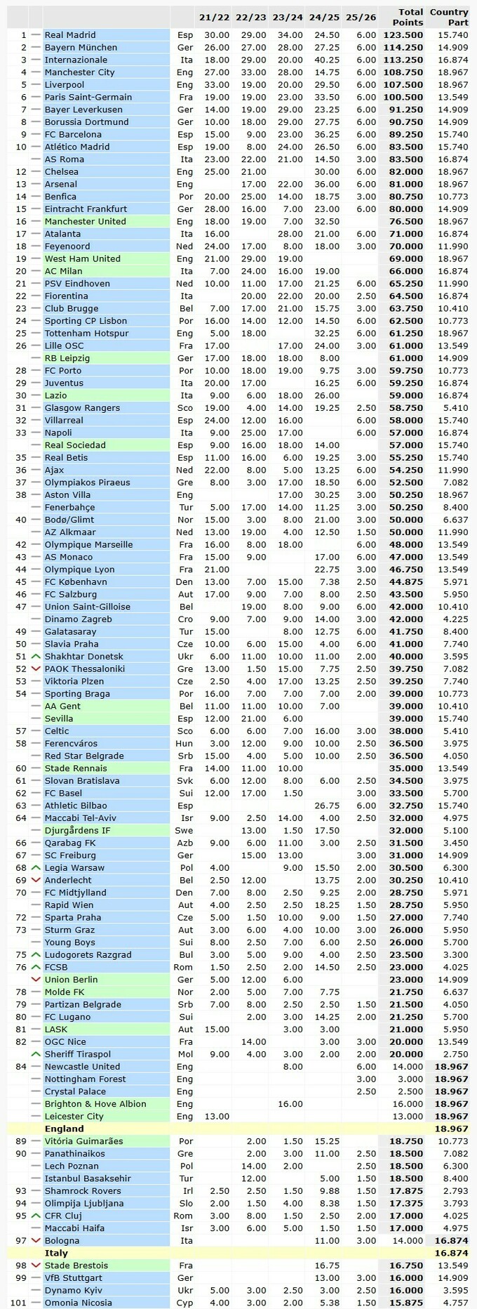 Изучаем, как выглядит таблица коэффициентов УЕФА после матчей Q1 нового евросезона.