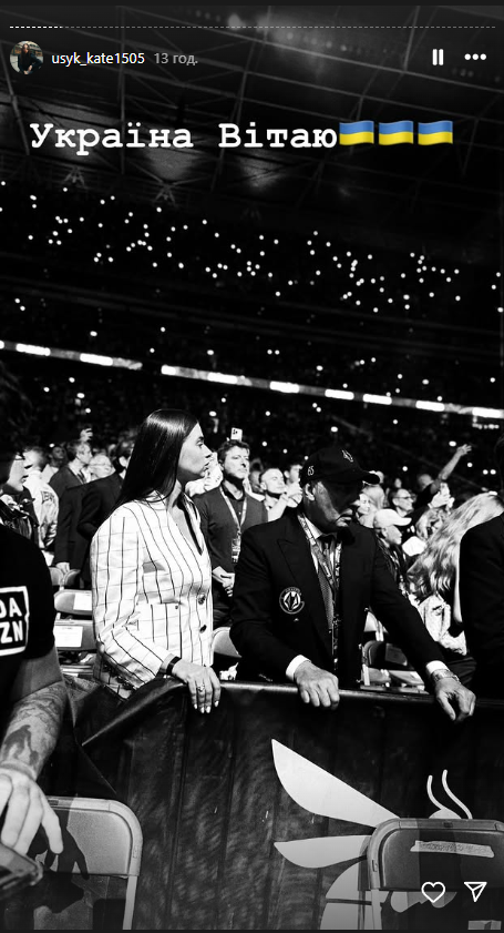 На победу Александра сразу после боя отреагировала его жена Екатерина Усик:
