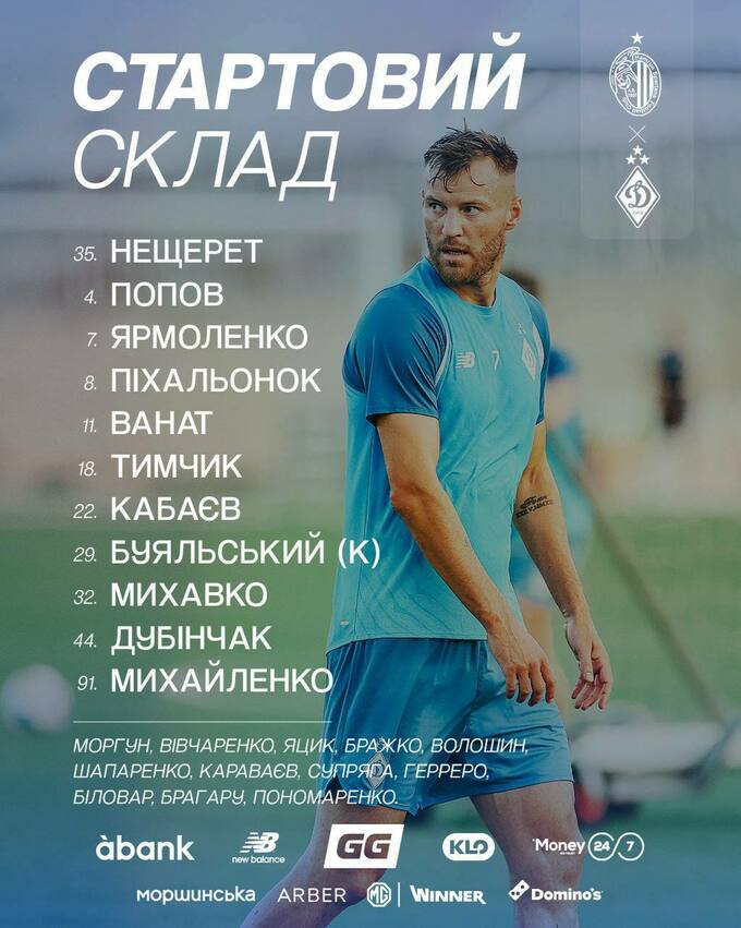 Динамо: Нещерет, Тымчик, Попов, Михавко, Дубинчак, Михайленко, Пихаленок, Буяльский, Ярмоленко, Ванат, Кабаєв