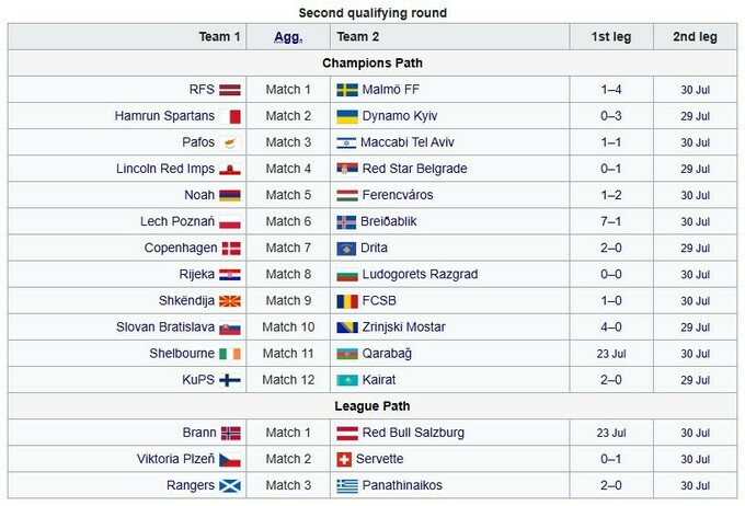 22 июля состоялись первые матчи 2-го раунда квалификации Лиги чемпионов