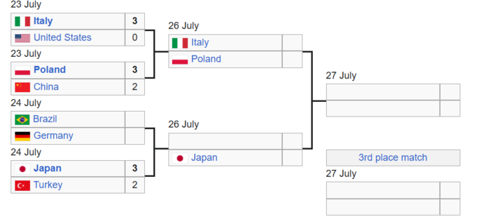 В полуфинале японки встретятся с победителем пары Бразилия – Германия, которые сыграют в тот же день, 24 июля, в 21:00 по киевскому времени.